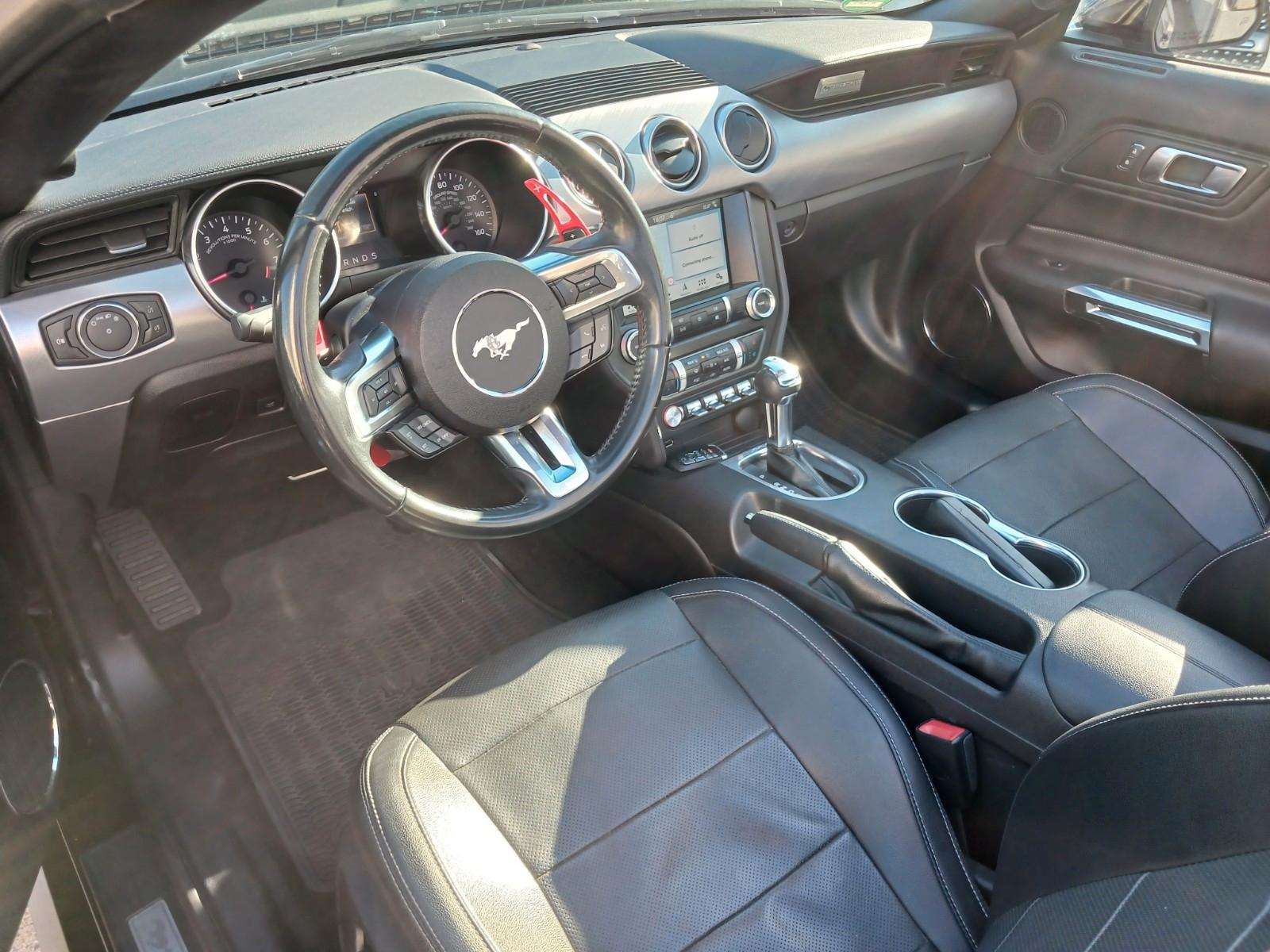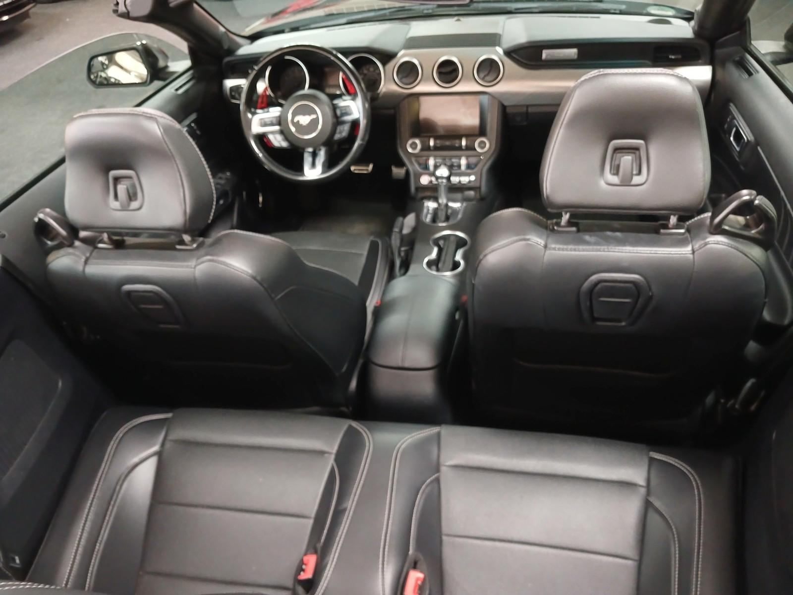 Sublime Ford Mustang GT Cabriolet V8 5.0 de 466ch 2019, finition haut de gamme avec sellerie cuir, navigation, sièges chauffants/ventilés, boîte auto, full LED. Disponible immédiatement avec livraison rapide.