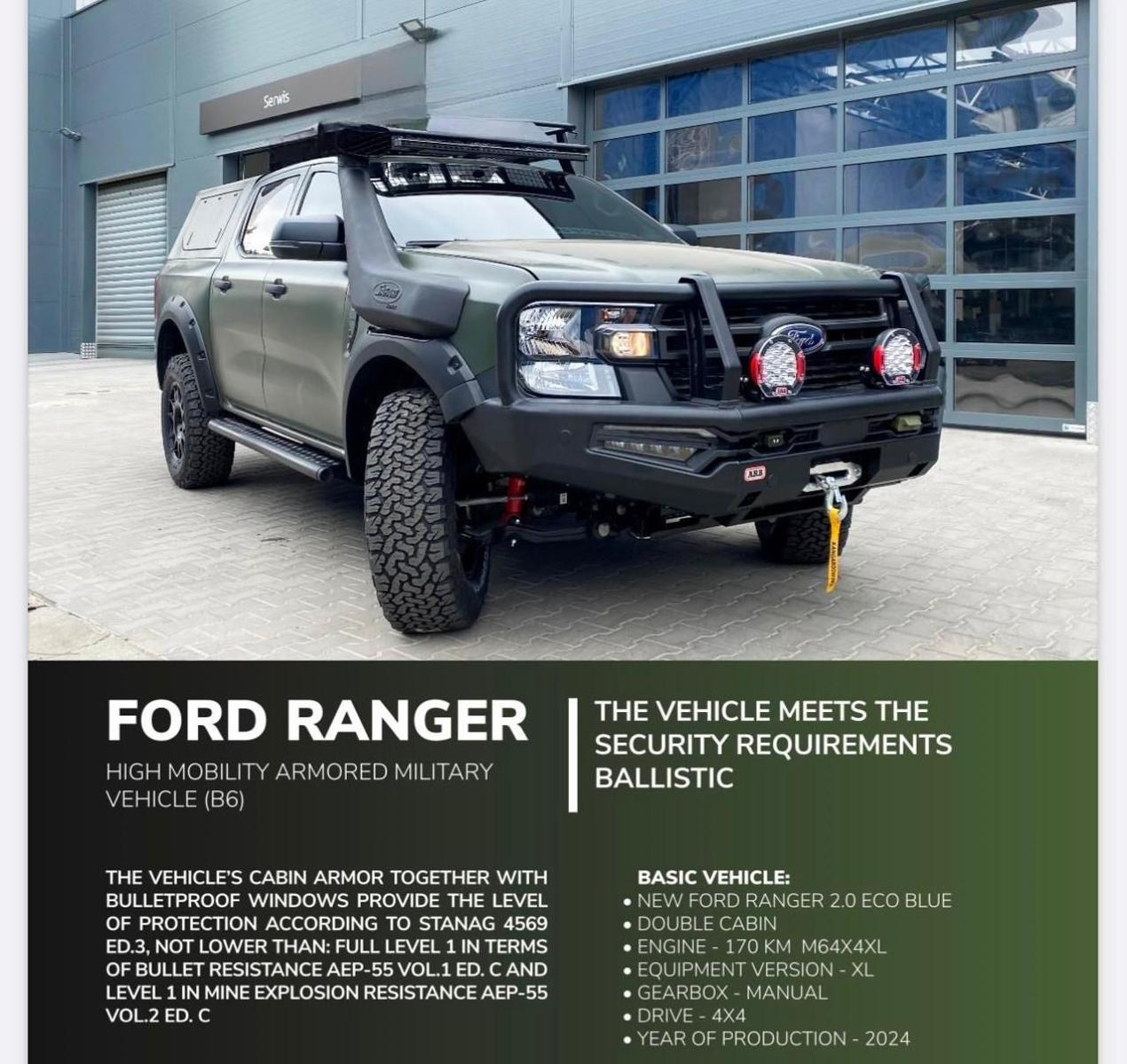 Ford Ranger XL 4WD Armored B6/VR7 Blindé